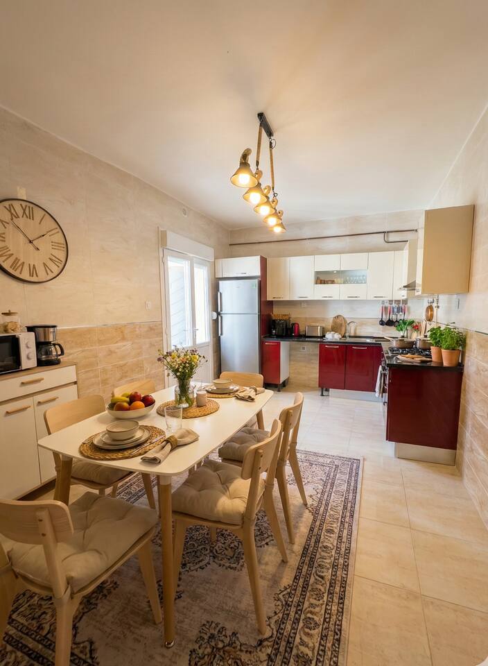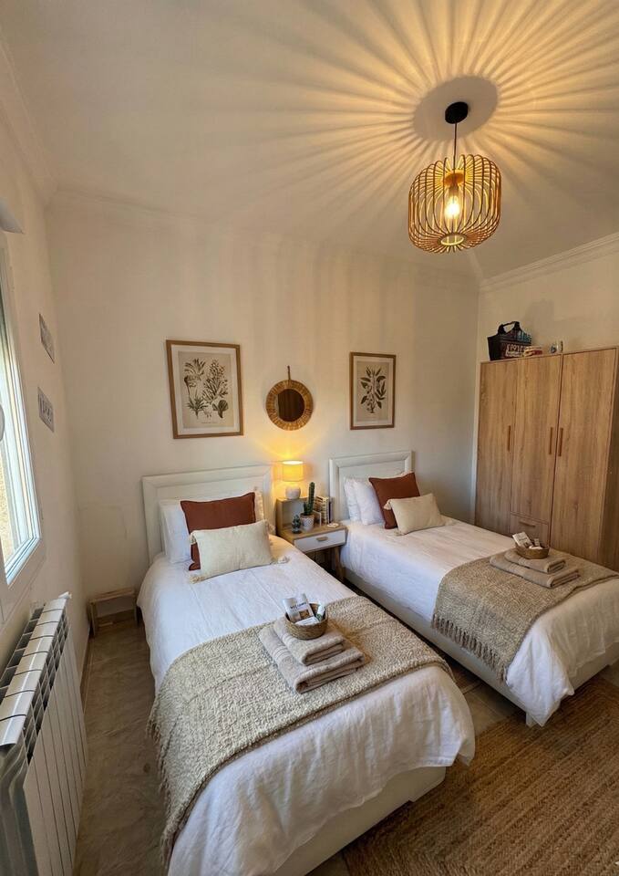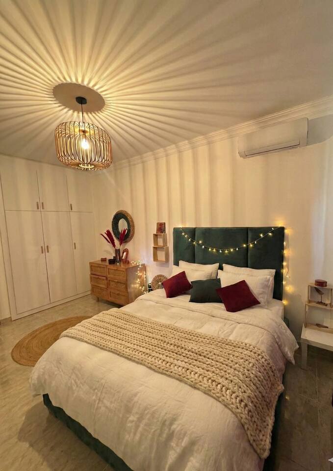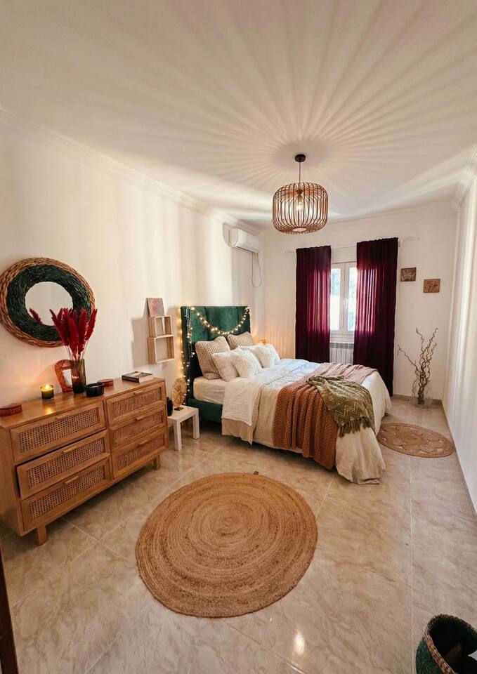 Tombez sous le charme de ce cocon chaleureux à Ouled Fayet, décoré avec soin dans un style naturel et contemporain. Imaginez vous dans le grand salon baigné de lumière, entouré de plantes et de matières douces, pendant que vos proches se reposent dans les chambres apaisantes. Climatisation, connexion internet et literie confortable assurent un séjour pratique après vos journées à Alger ou sur la côte. Réservez et profitez d'une résidence avec parking, proche des commerces, idéale pour le centre.