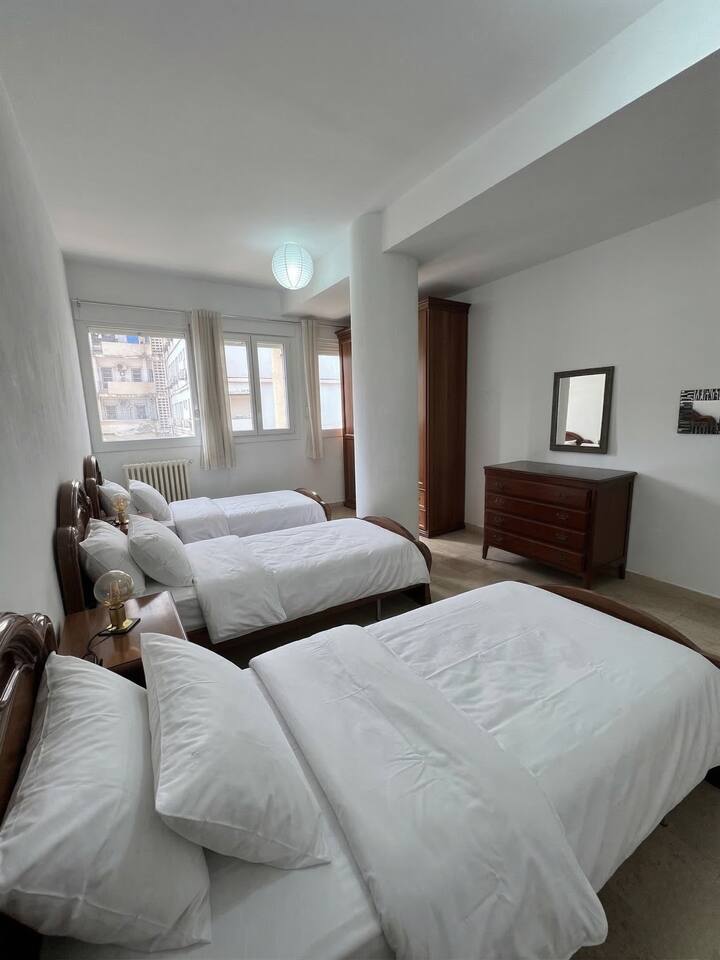 100% EXCLUSIF & CONFORT → APPARTEMENT VASTE idéalement situé sur la mythique Place Audin, l'épicentre d'Alger Centre. → 7 COUCHAGES parfaits pour les familles ou les groupes, avec 2 grands lits doubles et 3 lits simples confortables. → PARKING PRIVÉ dans l'immeuble : le luxe absolu en plein cœur d'Alger pour ne plus jamais galérer à trouver une place ! → ASCENSEUR pour accéder facilement et sans effort à votre logement après une longue journée de balade dans les rues d'Alger. → IMMEUBLE SÉCURISÉ 24H/24 abritant exclusivement des banques et des entreprises. Résultat : une tranquillité absolue le soir et le week-end, en plein centre-ville ! → TV HD pour vous détendre et vous divertir après vos sorties. → CUISINE ÉQUIPÉE (Four & Micro-ondes) pour préparer vos repas si vous ne souhaitez pas profiter des dizaines de restaurants au pied de l'immeuble. → MACHINE À LAVER pour voyager léger et avoir des vêtements propres en toutes circonstances. → MACHINE À CAFÉ pour bien démarrer vos journées avant de plonger dans l'animation de la ville. 100% HYPERCENTRE → Situé SUR la Place Audin, le carrefour stratégique de la capitale. → Situé à 1 min à pied de la Rue Didouche Mourad (l'artère principale pour le shopping et les flâneries). → Situé à 1 min à pied de la Fac Centrale. → Situé à 5 min à pied de la célèbre Grande Poste. → Situé à 5 min à pied de la station de Métro (Tafourah - Grande Poste ou Khelifa Boukhalfa). → Situé à 10 min à pied du Front de Mer et de la baie d'Alger. → Entouré d'une multitude d'animations, de commerces et de transports dès que vous passez la porte.