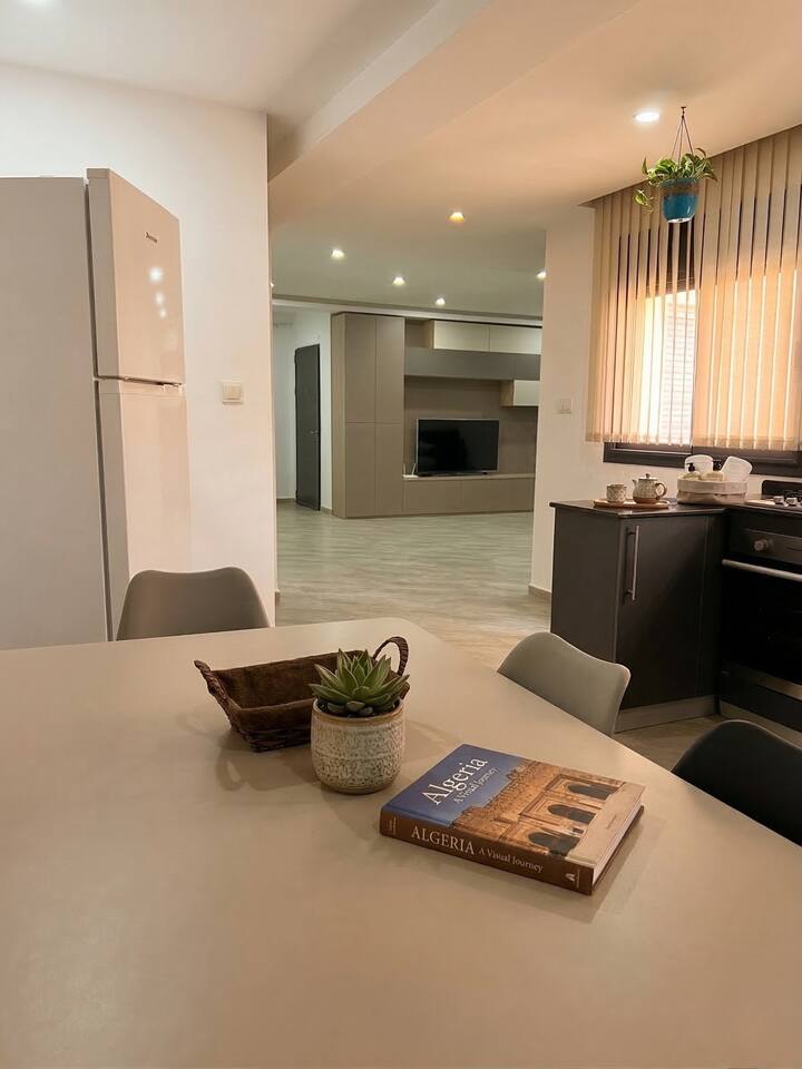 → Vous êtes à la recherche d'un grand appartement moderne, au calme, et parfaitement adapté pour une famille ou un groupe d'amis. → Vous aimeriez profiter de la tranquillité sans pour autant être éloigné des bonnes adresses et des grands axes d'Alger. Je vous comprends. Découvrir Alger la journée et se ressourcer dans un véritable havre de paix le soir, voici ce que je vous propose !