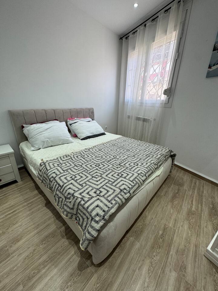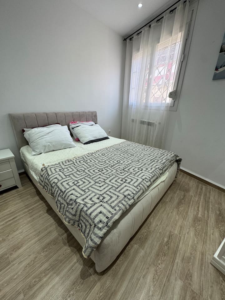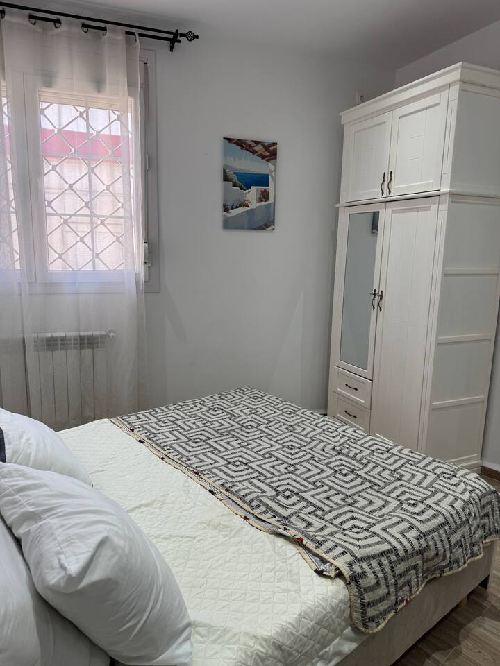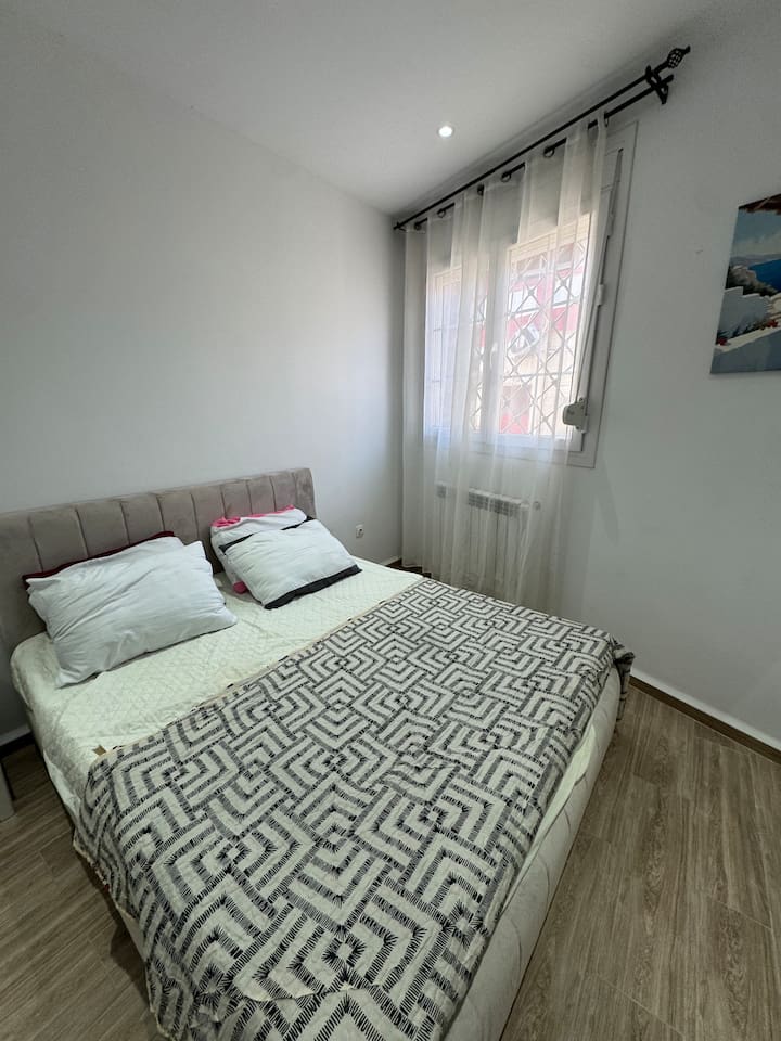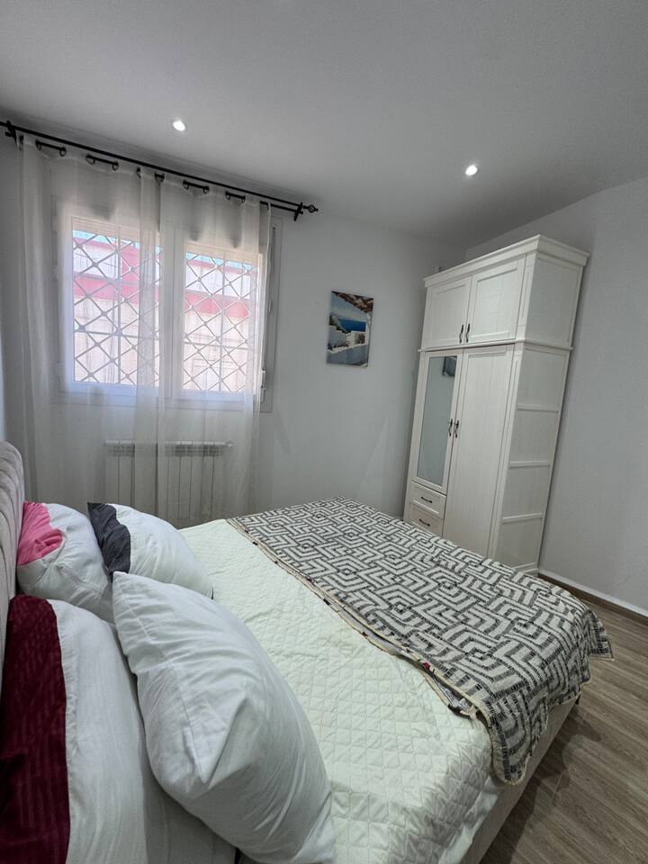 Appartement pieds dans l'eau à La Pérouse, Alger. Vue mer depuis le salon, accès plage à 1 min à pied. 5 voyageurs, 4 lits, WiFi fibre, cuisine équipée, lave-linge. Quartier calme et résidentiel, idéal pour familles et couples. Check-in autonome par boîte à clés.